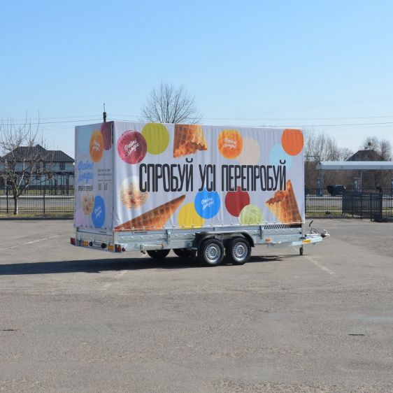 Детальніше про способи оплатиСпеціально для виробника морозива "Файні льоди" ми виготовили Бортовий причіп V9-5018 — надійне рішення для перевезення великогабаритних та об’ємних вантажів. Оснащений міцним каркасом і високим тентом (2,45 м), він забезпечує захист вашого вантажу за будь-яких умов.