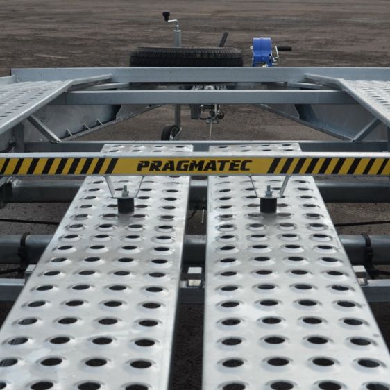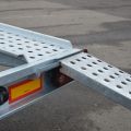 - Лавета укомплектована двома заїзними трапами довжиною 2 м, які надійно закріплені на рамі за допомогою воротків та зафіксовані з іншого боку кронштейнами з відбійниками для того, щоб під час руху вони не гриміли та не загубилися у дорозі.