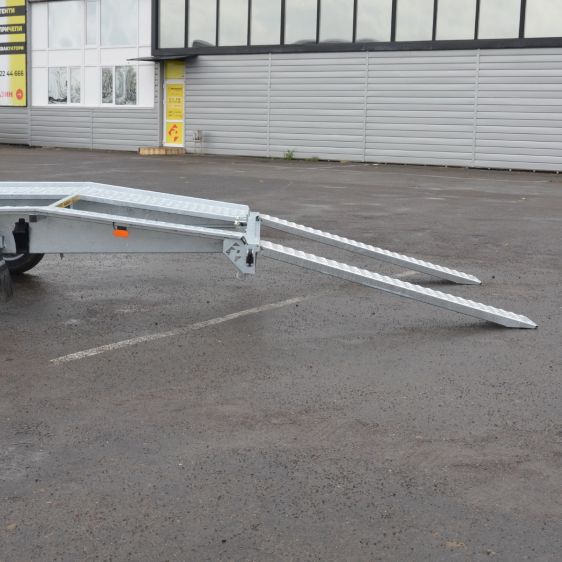 - Лавета укомплектована двома заїзними трапами довжиною 2 м, які надійно закріплені на рамі за допомогою воротків та зафіксовані з іншого боку кронштейнами з відбійниками для того, щоб під час руху вони не гриміли та не загубилися у дорозі.