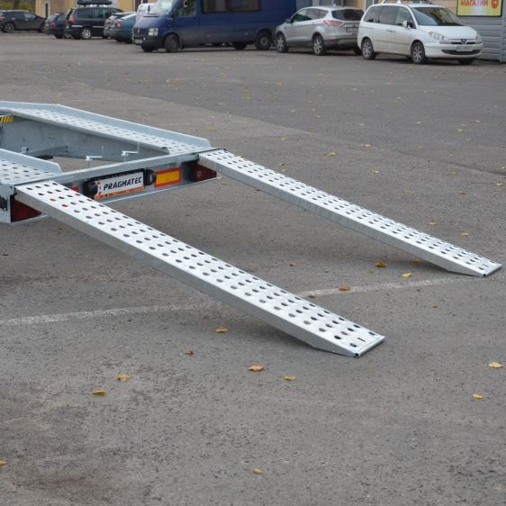 Лавета укомплектована двома заїзними трапами довжиною 2 м, які надійно закріплені на рамі за допомогою воротків та зафіксовані з іншого боку кронштейнами з відбійниками для того, щоб під час руху вони не гриміли та не загубилися у дорозі.