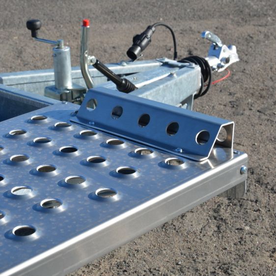 - Настил платформи - перфорований алюмінієвий лист. Форма отворів може бути круглою або овальною. Краї отворів забезпечують додаткове ребро жорсткості, а також високий показник зчеплення коліс автомобіля, що перевозиться, з платформою лавети. Настил може бути з оцинкованого перфорованого листа товщиною 4 мм.