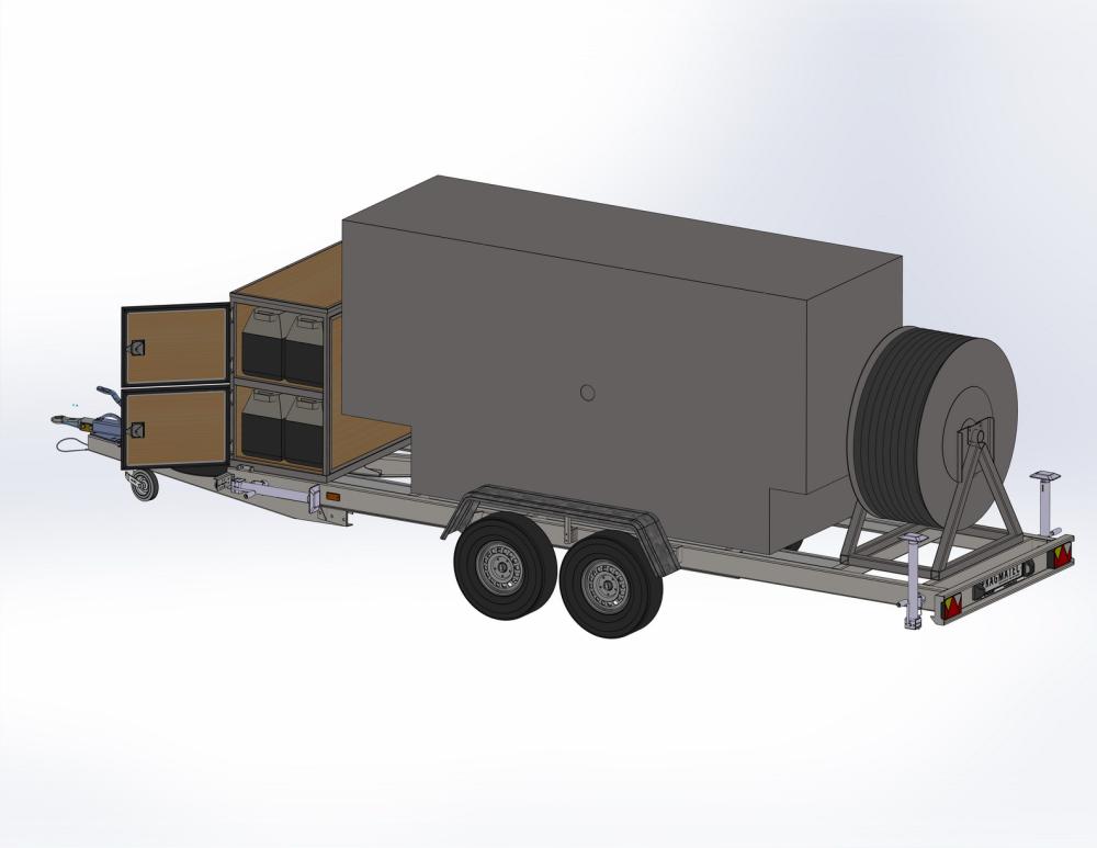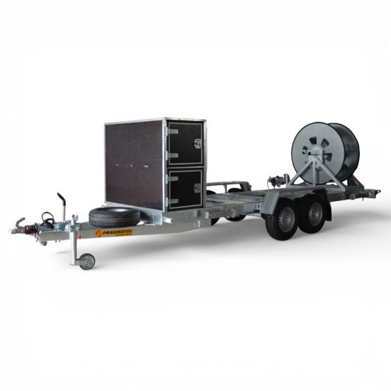 Причіп розроблений для безпечного та зручного транспортування автономних джерел живлення, генераторів і кабельної продукції.
