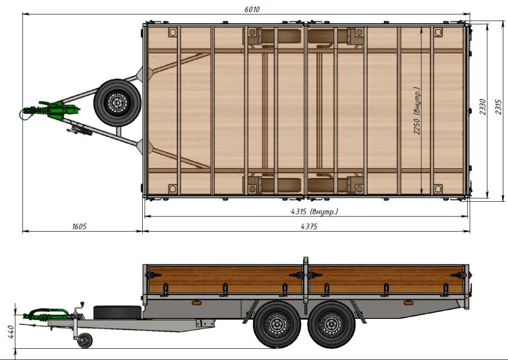 | Тип | Бортовий причіп з каркасом висотою 2200 мм |