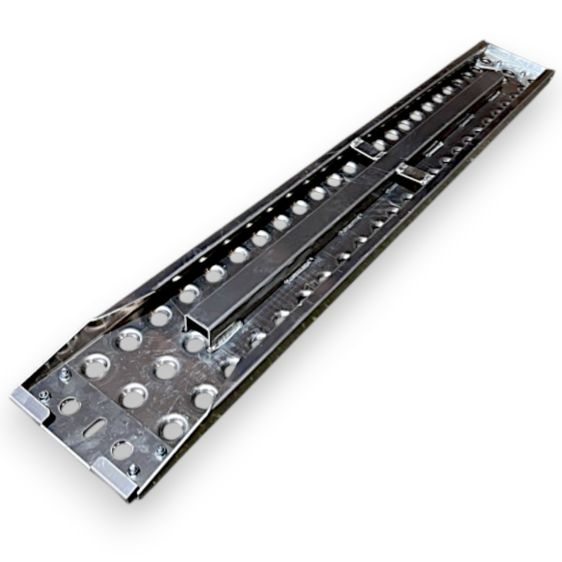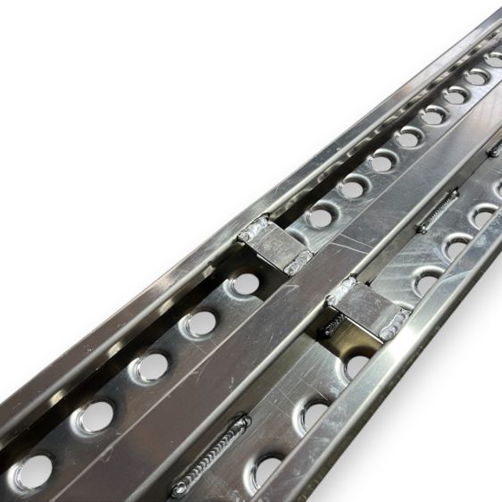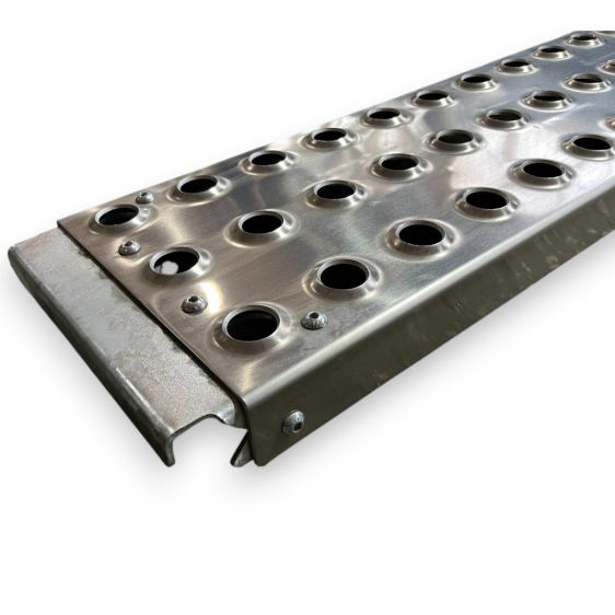 Детальніше про способи оплатиТрап гнутий посилений, габаритними розмірами 2000х300х65 мм, виготовляється методом згину алюмінію марки 5754, товщиною 4 мм. Для кращого зчеплення під час заїзду, вздовж листа розташоване штампування трьома рядами з кроком 100х50 мм та розмірами отворів 43х17 мм. Для посилення трапа використовується труба 66х58 мм, а також зв’язні пластини товщиною 4 мм для забезпечення жорсткості конструкції. Зачіп трапа виконаний з металу товщиною 4 мм, що забезпечує надійне кріплення під час його використання. Трап призначений для заїзду легкових автомобілів. Максимальне навантаження на пару трапів 2000 кг. Гранично допустимий кут заїзду становить 30% = 16,5 °