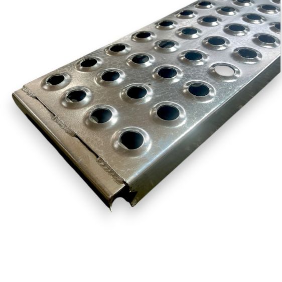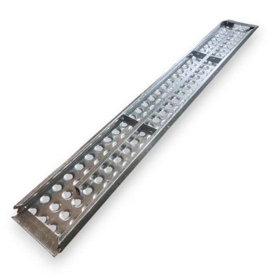 Детальніше про способи оплатиТрап гнутий посилений Для кращого зчеплення під час заїзду, вздовж листа розташоване штампування трьома рядами з кроком 100х50 мм та розмірами отворів 43х17 мм. Для посилення трапа використовується труба 66х58 мм, а також зв’язні пластини товщиною 3 мм для забезпечення жорсткості конструкції. Зачіп трапа виконаний з металу товщиною 3 мм, що забезпечує надійне кріплення під час його використання. Трап призначений для заїзду легкових автомобілів. Максимальне навантаження на пару трапів 1600 кг. Гранично допустимий кут заїзду становить 30% = 16,5 °