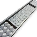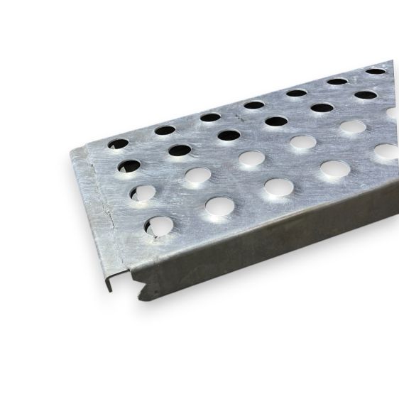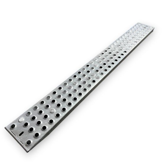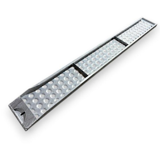 Детальніше про способи оплатиТрап гнутий, габаритними розмірами 2500х300х67 мм, виготовляється методом згину листової сталі марки Ст3пс, товщиною 3 мм. Для кращого зчеплення під час заїзду, вздовж листа розташоване штампування трьома рядами з кроком 100х50 мм та розмірами отворів 43х17 мм. Для посилення трапа використовуються зв’язні пластини товщиною 3 мм для забезпечення жорсткості конструкції. Зачіп трапа виконаний з металу товщиною 4 мм, що забезпечує надійне кріплення під час його використання. Для зручності хвату при витягуванні та завантаженні трапа, до нижньої його частини приварюється труба діаметром 21 мм. Трап призначений для заїзду легкових автомобілів. Максимальне навантаження на пару трапів 1300 кг. Гранично допустимий кут заїзду становить 30% = 16,5 °